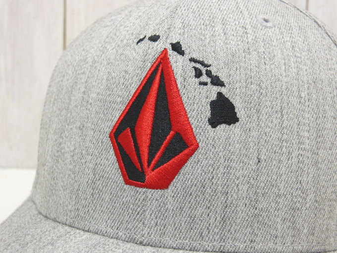 フロントパネルにストーンロゴとアイランドチェーンがダイレクト刺繍、左サイドにVOLCOM刺繍入りのFLEXFITのキャップです。